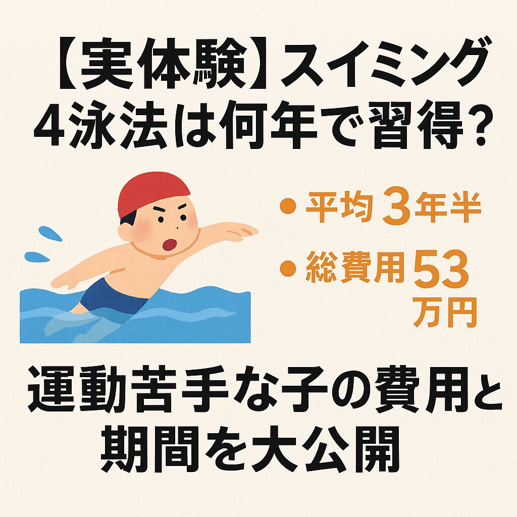実際に子どもをスイミングスクールに通わせた経験から、4泳法習得までの期間、かかる費用、そして運動が苦手な子の実例まで、リアルな情報をお伝えします。
