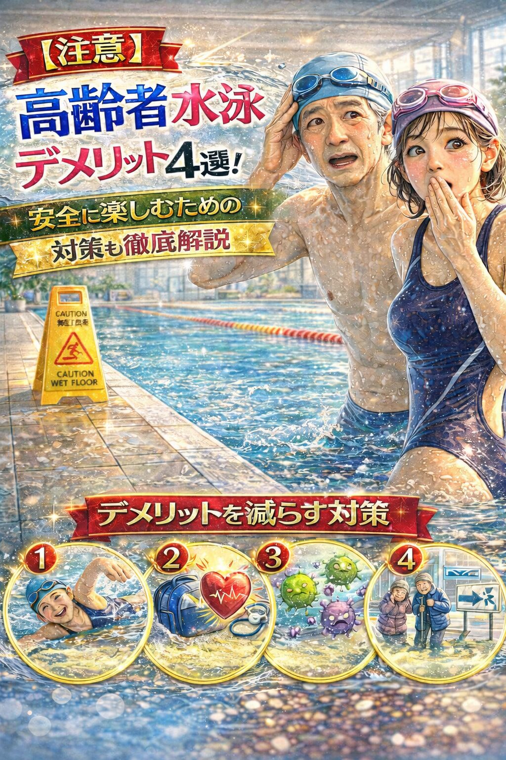 高齢者が水泳を安全に楽しむためには、これらのリスクや対策を正しく理解し、適切に運動を行うことが非常に重要です。