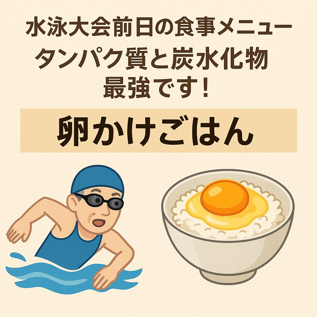 「以前は試合前日に脂っこい食事をしてしまい、翌日胃が重くて泳ぎにくかったのですが、卵かけごはんを取り入れてからは、消化が良くて体が軽く感じました。